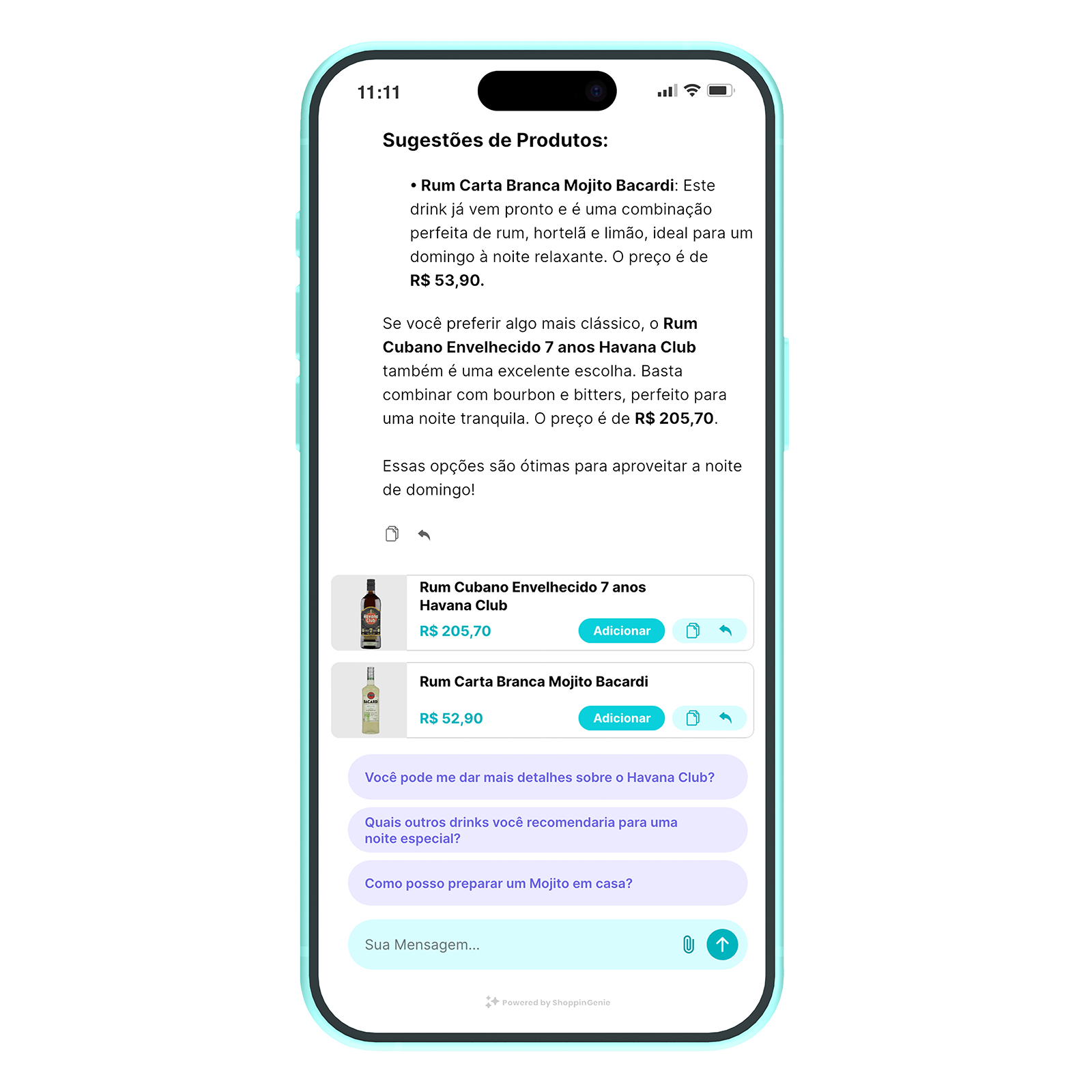 A ShoppinGenie utiliza inteligência artificial generativa para recomendar produtos em tempo real com base no comportamento do consumidor. Isso aumenta o ticket médio por meio de upselling e cross-selling inteligentes, além de reduzir o abandono de carrinho ao responder dúvidas com agilidade durante a jornada de compra.